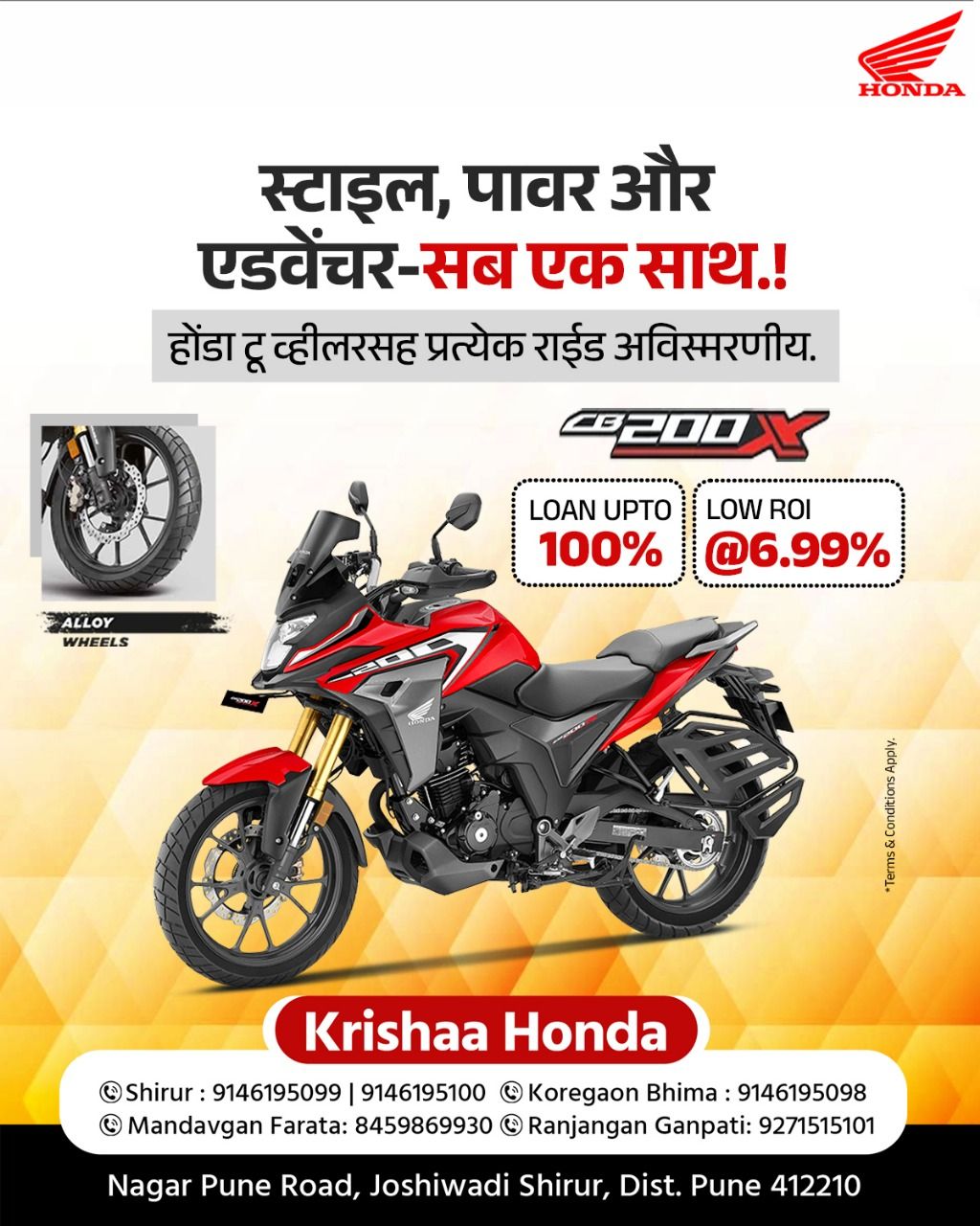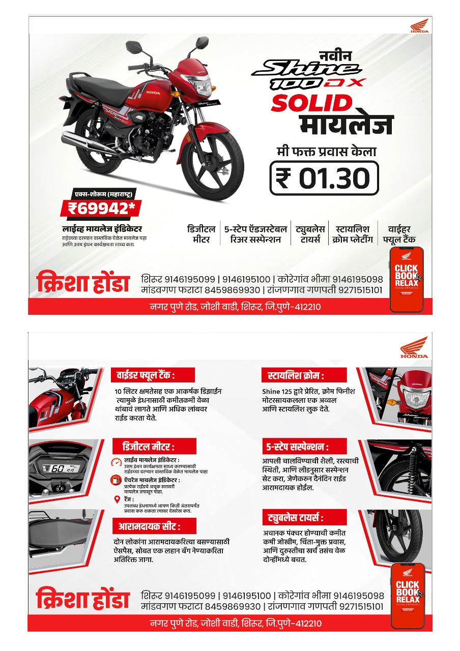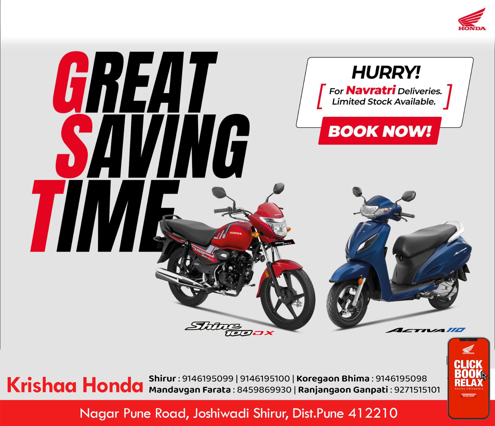 Authorized Dealer Of Honda Motorcycle & Scooter India Pvt. Ltd. Incorporated in March 2016, We are one of the Leading Vehicle Dealers in Shirur. We Sell Joy of Purchasing to Our Customers. We offer multiple Service regarding Sales, Spares, Servicing, Safety & Insurance Renewal of Honda 2 Wheelers. Benefits on Exchange Your Vehicle.