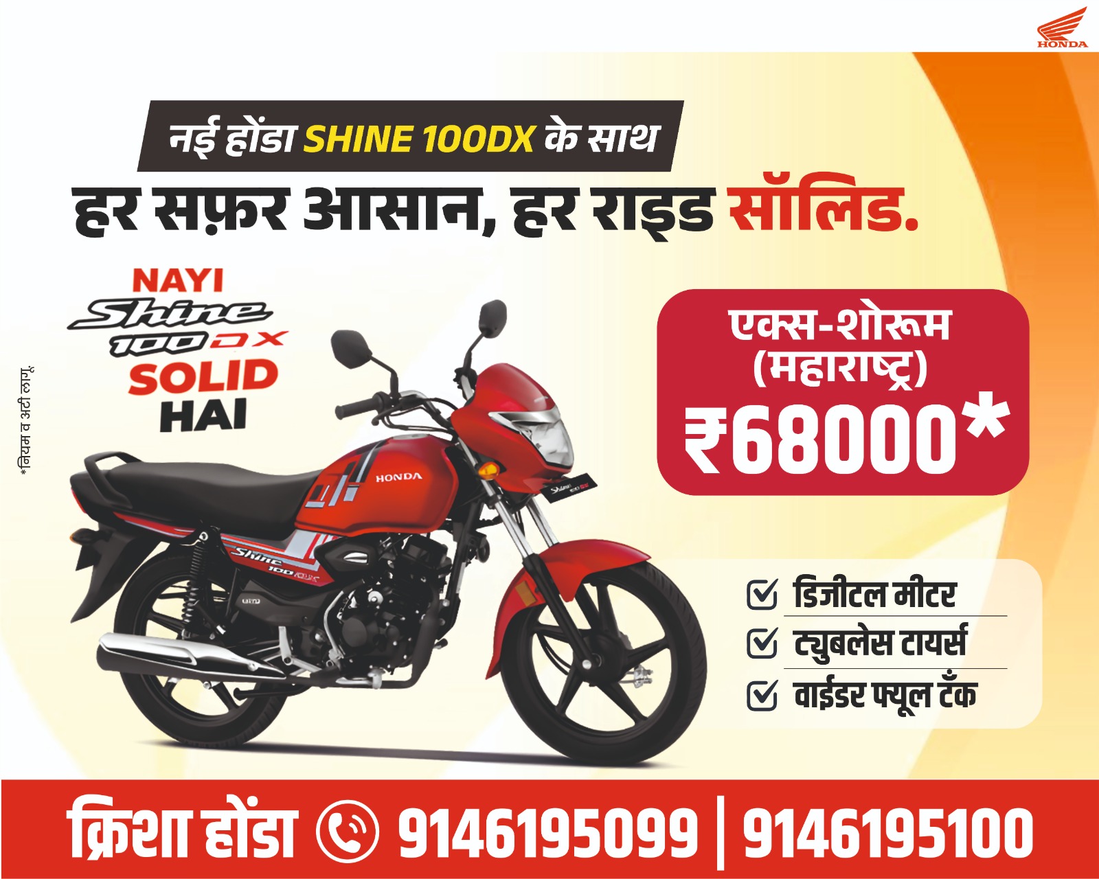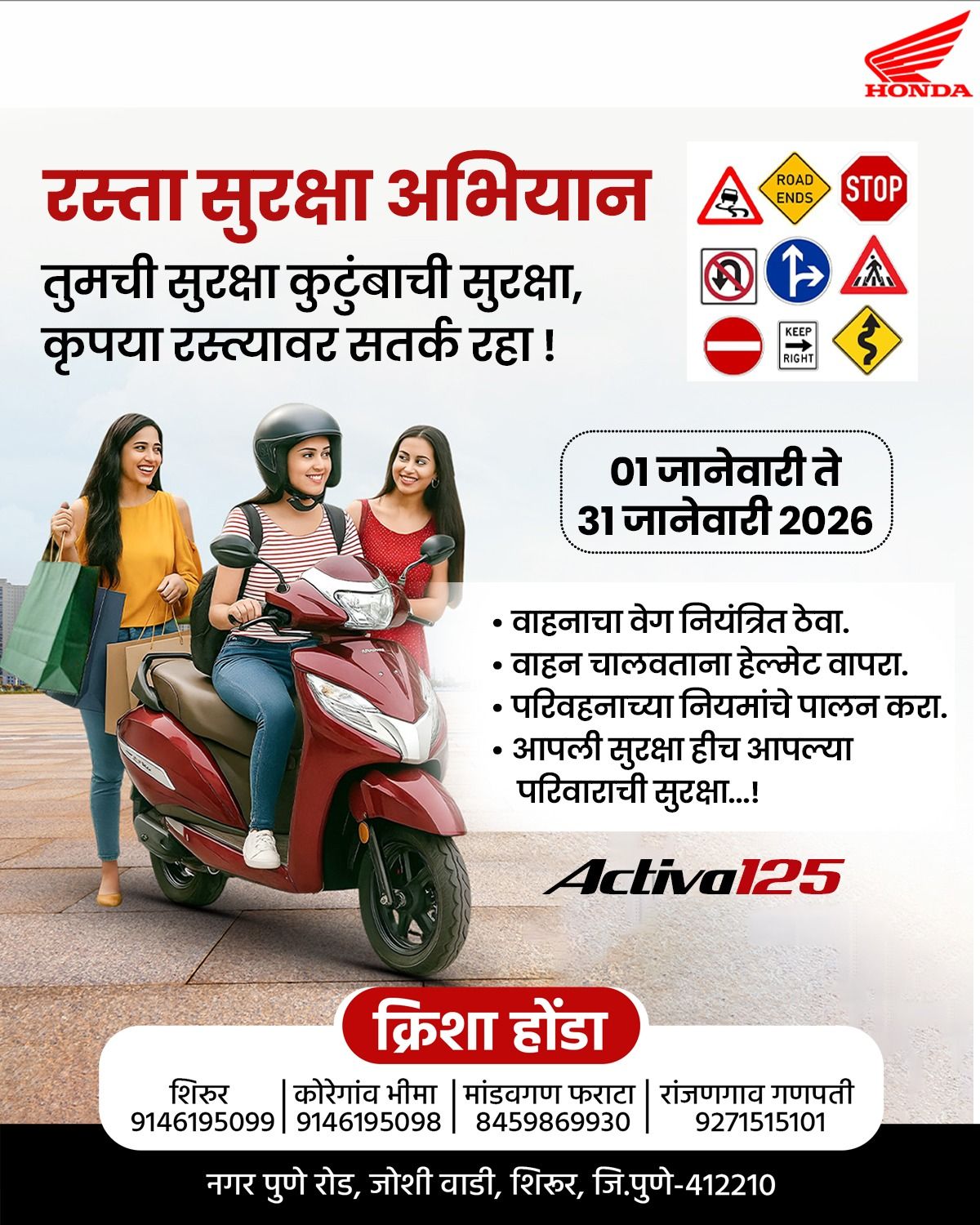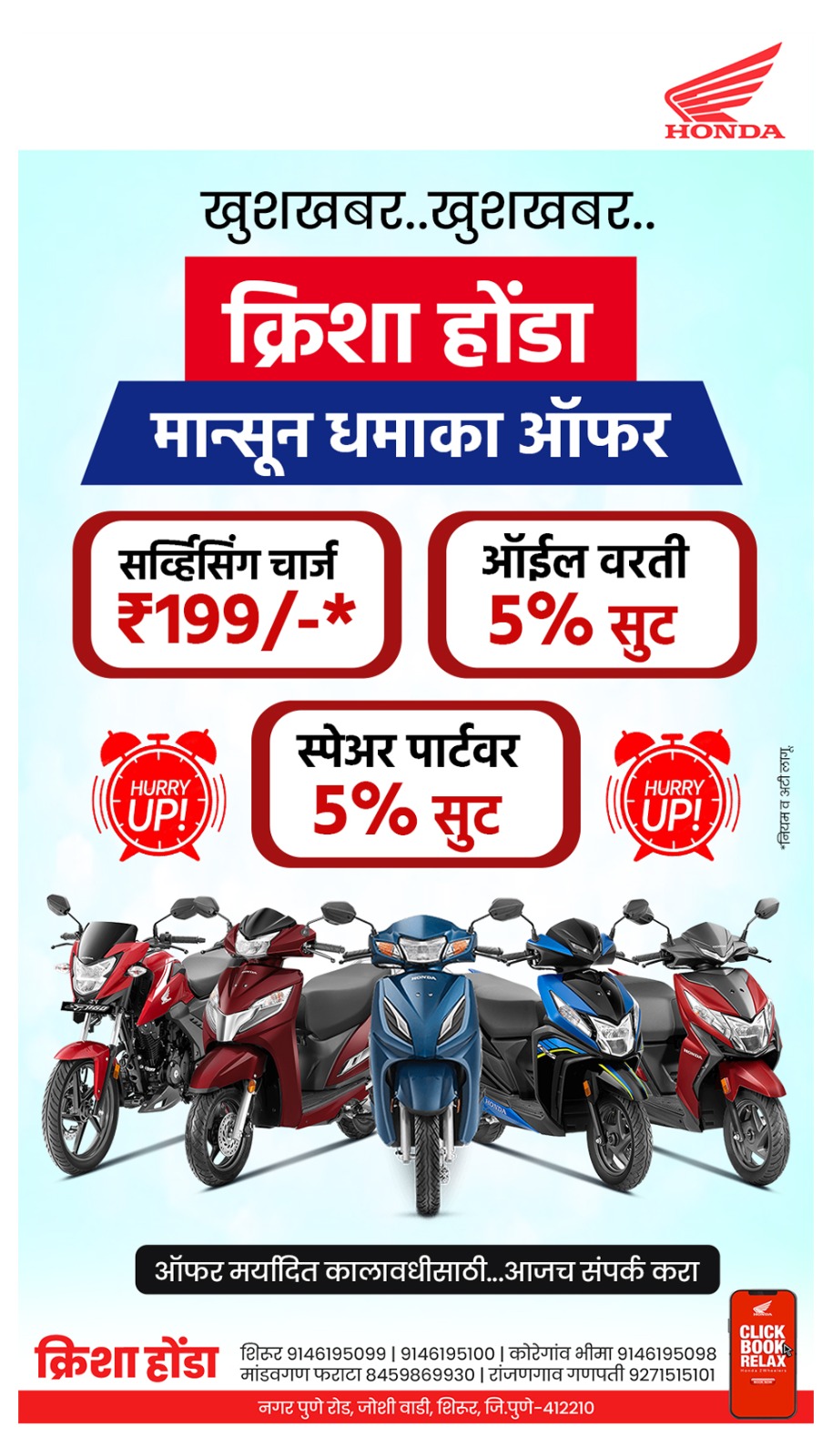Authorized Dealer Of Honda Motorcycle & Scooter India Pvt. Ltd. Incorporated in March 2016, We are one of the Leading Vehicle Dealers in Shirur. We Sell Joy of Purchasing to Our Customers. We offer multiple Service regarding Sales, Spares, Servicing, Safety & Insurance Renewal of Honda 2 Wheelers. Benefits on Exchange Your Vehicle.